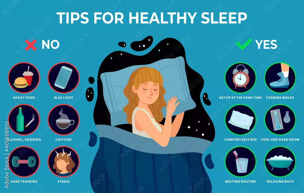 الضوء الأزرق المنبعث من الهواتف يثبط هرمون الميلاتونين المسؤول عن النوم، لذلك يجب التوقف عن استخدامها قبل النوم بساعة على الأقل.